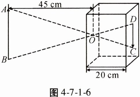 6. 如图4-7-1-6,根据图中标注的尺寸,如果物体AB的高度为36 cm,那么它在暗盒中所成的像CD的高度为