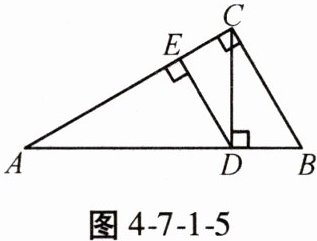 5. 如图4-7-1-5,CD是Rt$\triangle ABC$斜边AB上的高,DE⊥AC,垂足为E,已知CD = $\frac{12}{5}$,AB = 5,AC = 4,求DE的长。