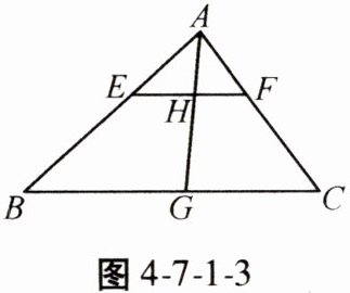3. 如图4-7-1-3,在$\triangle ABC$中,EF//BC,AG平分$\angle BAC$交EF于点H,交BC于点G。若EF = 3,BC = 9,AH = 2,则HG =