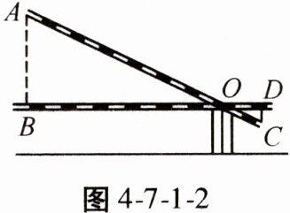 2. 学校门口的栏杆如图4-7-1-2所示,栏杆从水平位置BD绕O点旋转到AC位置,已知AB⊥BD,CD⊥BD,垂足分别为点B,D,AO = 4 m,AB = 1.6 m,CO = 1 m,则栏杆端点C应下降的垂直距离CD为(