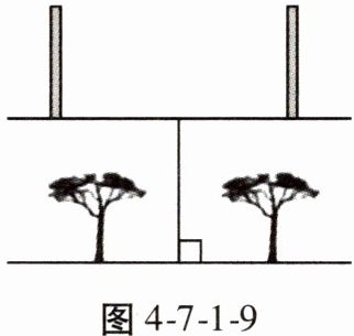 9. 如图4-7-1-9,一条河的两岸有一段是平行的,在河的这岸每隔3 m有一棵树,在河的对岸每隔30 m有一根电线杆,从这岸离开岸边15 m处看到对岸相邻的两根电线杆恰好被这岸的两棵树遮住,并且在这两棵树之间还有三棵树,求河的宽度。