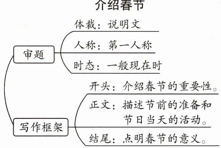 本单元的话题是节日。不同的国家、不同的民族都有自己的节日。每个节日的设立都有一定的意义,有的追求团圆,有的追求好运,有的表达谢意,有的表达追思。在写作中,-定要写出该节日的意义。