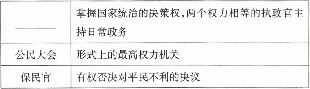 | | 掌握国家统治的决策权,两个权力相等的执政官主持日常政务 |