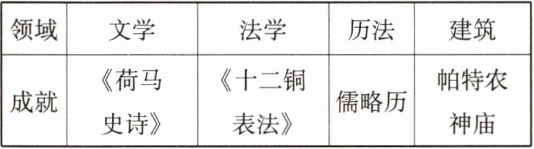 |成就|《荷马史诗》|《十二铜表法》|儒略历|帕特农神庙|