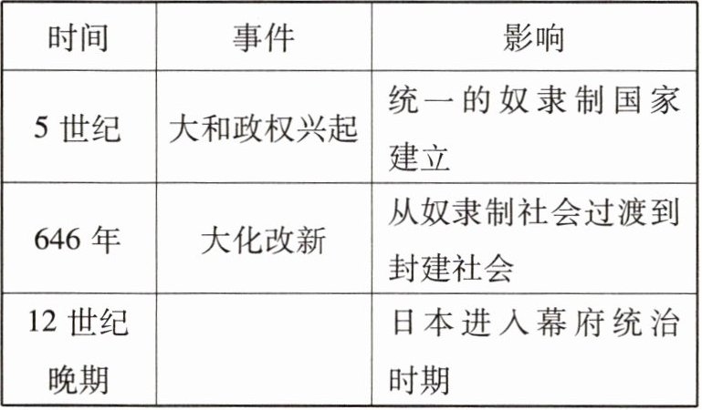 | 5世纪 | 大和政权兴起 | 统一的奴隶制国家建立 |