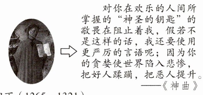 (2)材料三中但丁批判的是什么?材料四中莎士比亚赞美的又是什么?