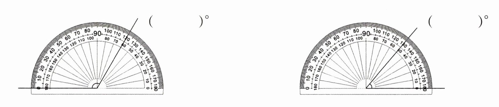 四、根据给出的具体时刻画出时针或分针,并量出这时它们所成角的度数。