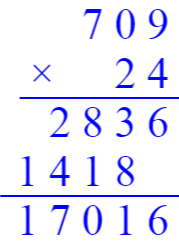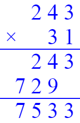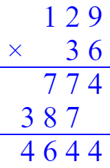 243×31=7533 295×40=11800 709×24=17016 36×129=4644