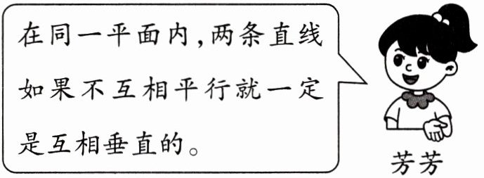 我不赞同芳芳的说法,因为在同一平面内,两条直线如果不互相平行,可能是相交但不垂直。