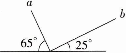 直线a和直线b互相垂直。理由:$65^{\circ }+25^{\circ }=90^{\circ }$ $180^{\circ }-90^{\circ }=90^{\circ }$,直线a和直线b相交成了一个直角,所以互相垂直。