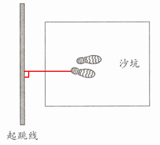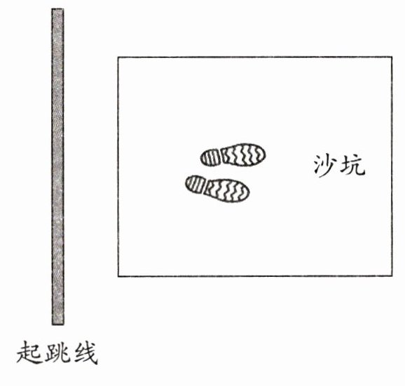 5. 小强跳远时留下的脚印如右图所示。如果你是裁判员,应该怎样测量他的跳远成绩呢?在图中画出能测量出小强跳远成绩的线段,并说明理由。
