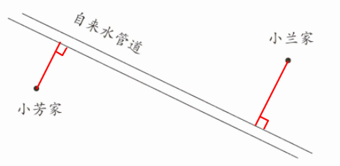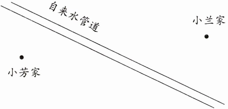 7. 小芳家和小兰家都刚建了新房子,要把自来水引进家里,怎样安装最节省水管?请画图说明。