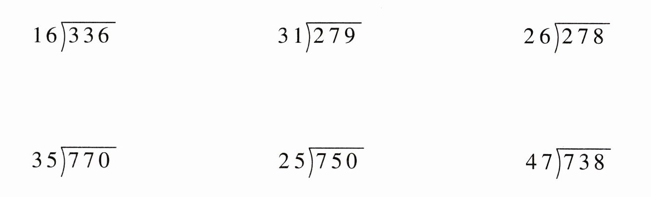 336÷16=21 279÷31=9 278÷26=10……18 770÷35=22 750÷25=30 738÷47=15……33