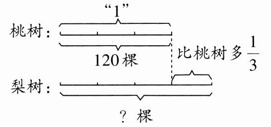 1. $120×(1+\frac{1}{3})=160$(棵) 2. $120×(1-\frac{1}{5})=96$(棵)