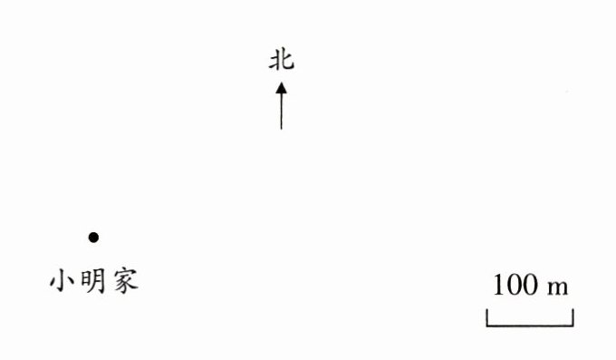 2. 画正西方向线段:从小明家(点)向西画3厘米线段,标出广场位置。