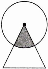 四、如图,两个图形重叠部分的面积相当于圆的$\frac{1}{6}$,相当于三角形的$\frac{1}{4}$。圆和三角形的面积比是多少?