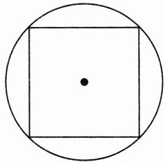 如图,正方形的面积是$20$cm^2,求圆的面积。