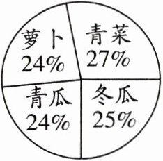 四、小红家2023年共收获蔬菜10000kg。各种蔬菜所占百分比情况如下图: