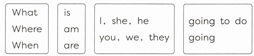 Ⅲ. 连词成句。(请从每个方框中选择单词连成5个完整的句子,并加上合适的标点符号。)