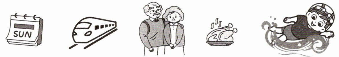 李明将在下周日去文昌看望祖父母,根据图片及提示词写一写他的活动安排。不少于5句话。