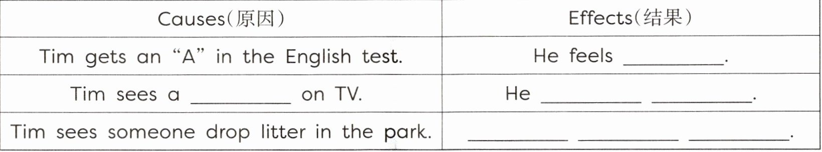 Hello, I’m Tim. I am 12 years old now. I have many different feelings. My feelings change from time to time. Sometimes I feel happy because I get an “A” in the English test. Sometimes I feel afraid because I see a monster(怪物) on TV. Sometimes I feel angry because I see someone drop litter in the park. We should keep the park clean.