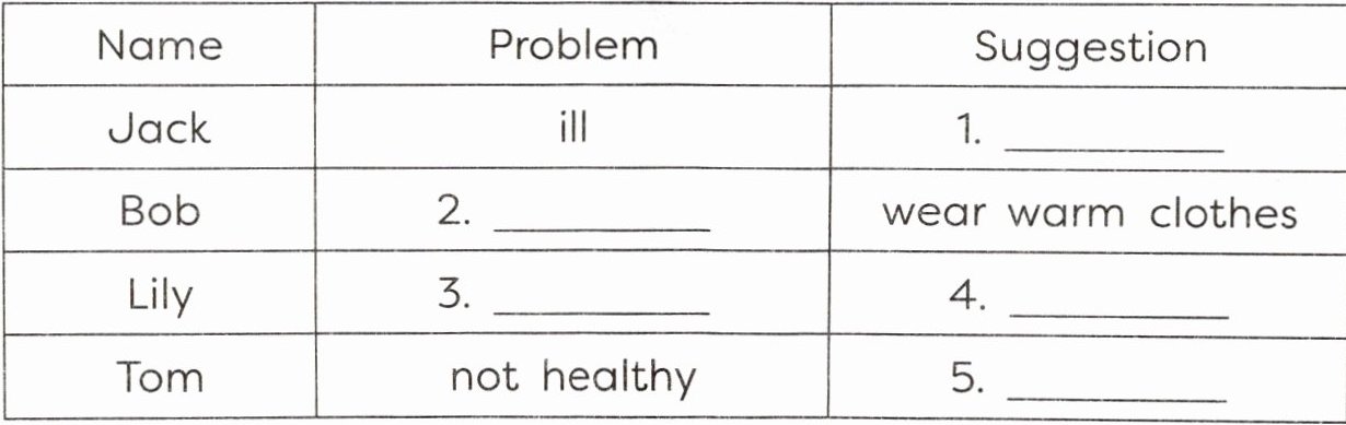 )3. A. You should wear warm clothes. B. You’re old. C. You should go outside.(