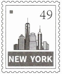 1. This stamp is from the US. It has got a picture of New York on it. 2. This stamp is from the UK. It has got a picture of London on it.
