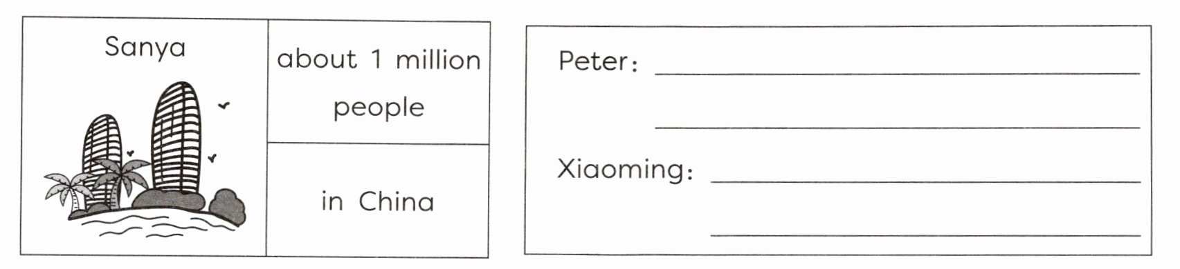 范文:Peter: Tell me more about Sanya. How big is it? Xiaoming: It has got about one million people. It's a beautiful city in China.