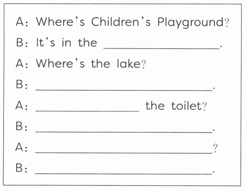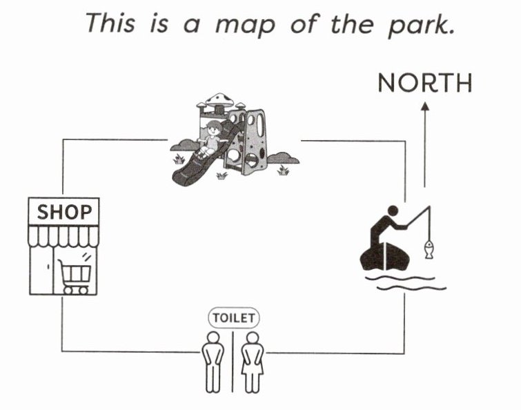 north; It's in the east; Where's; It's in the south; Where's the shop; It's in the west