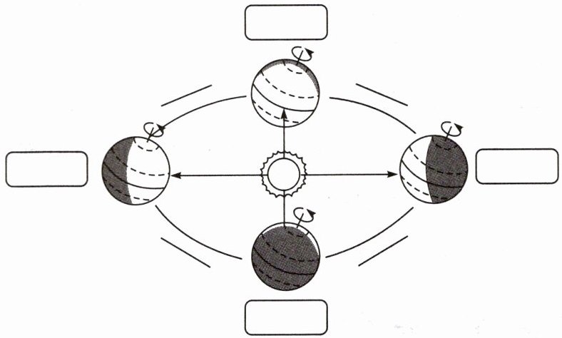 (2) 在地球所处的四个不同位置旁的方框内,分别填注北半球的四个节气。
