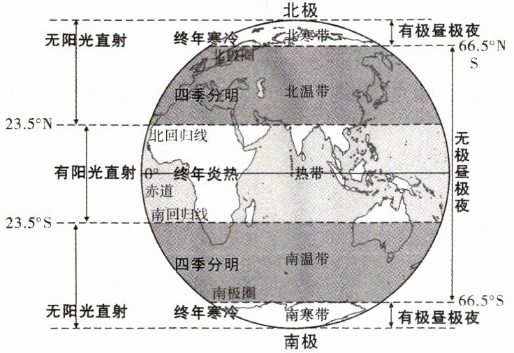 (3)3 21 赤道 昼夜平分 6 21 北回归线(23.5°N) 昼长夜短 极昼 9 23 赤道 昼夜平分 12 22 南回归线(23.5°S) 昼短夜长 极夜