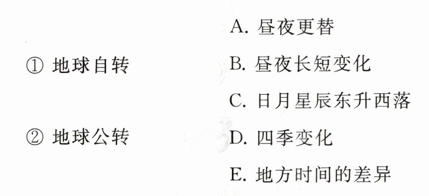2. 将地球自转和公转所产生的地理现象对号入座,连连看。
