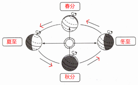 (1) 在图中公转轨道上用箭头表示地球公转的方向。