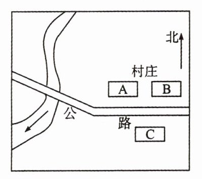 (3) 村庄B在村庄A的____方;村庄C在村庄A的____方,在村庄B的____方。