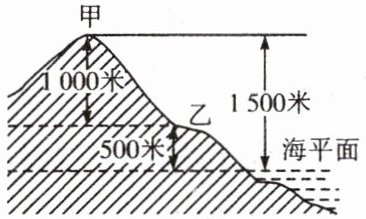 (1) 海拔:地面某个地点高出____的垂直距离。右图中甲、乙两点的海拔分别是____米和____米。