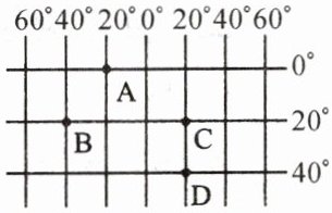 (2) A、B、C、D四点中位于低纬度的有____,位于中纬度的有____。
