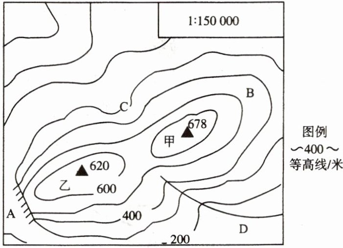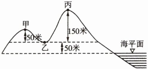 (3) 甲、乙两山峰之间的水平距离是____米(图上距离为 2.5 厘米)。