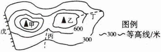 6. 老师告诉同学们:“图上甲、丙、丁、戊四处等高线形态不一样,分别表示不同地形部位,上山后一定要留心观察,看它们在地形上有什么区别。”图中甲、丙、丁、戊依次是指( )。