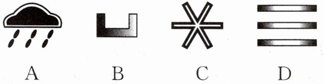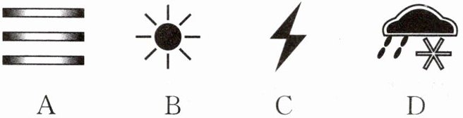 3. 学校准备第二天去郊外春游,小强担心下雨去不了,晚上看了电视里天气预报的天气形势图后,小强很高兴。请问他看到的反映当地天气的符号可能是( )。