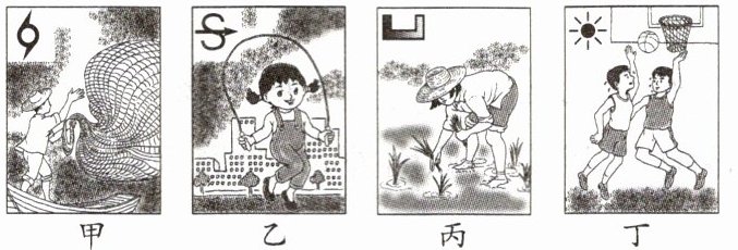 5. 上面四幅图中,天气符号所代表的天气与图中人们进行的活动相适宜是( )。
