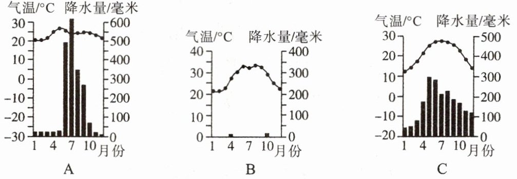 (1) 乙地终年高温,分旱、雨两季。下图中与乙地相对应的是______。