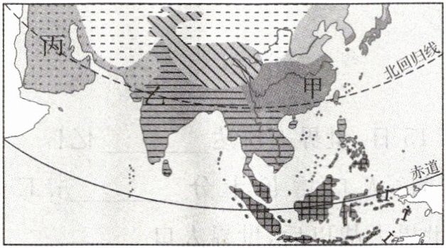(2) 甲、丙两地虽都位于北回归线上,但降水差异却很大,甲相对应的是______,丙相应的是______。