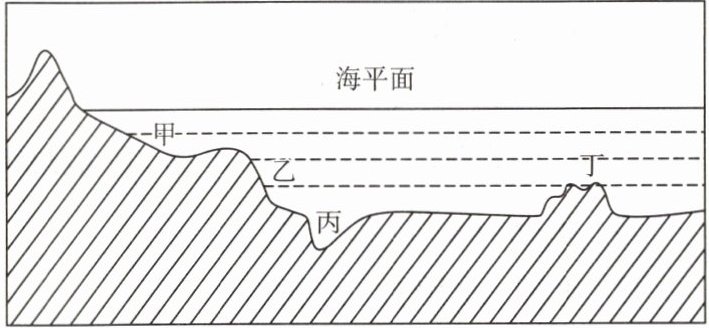 4. 右图为某海域海底地形剖面示意图,甲、乙、丙、丁四处地形依次是( )。