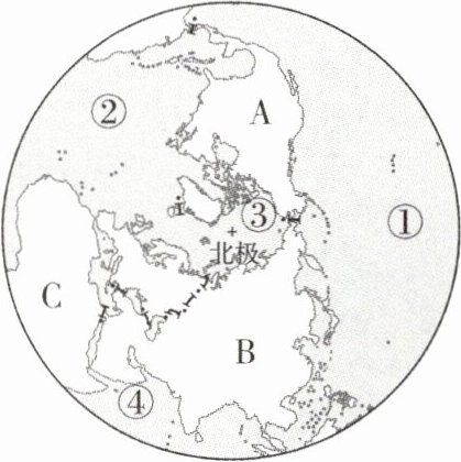 2. 右图中甲、乙、丙代表的大洲或大洋分别是( )。