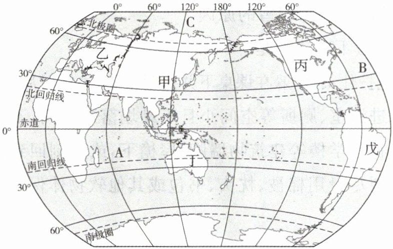 (2)图中甲是______洲,它有世界上最高的______高原。乙为______洲,它的大部分范围属于______(填“高”“中”或“低”)纬度。