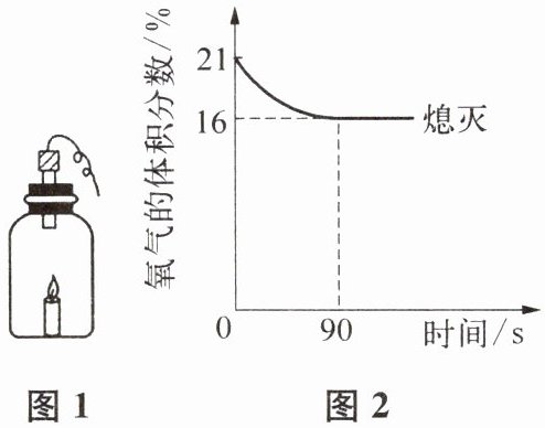 14. 将燃着的蜡烛放在如图1所示的密闭容器中,同时用氧气传感器测出密闭容器中氧气含量的变化如图2所示。下列说法错误的是( )