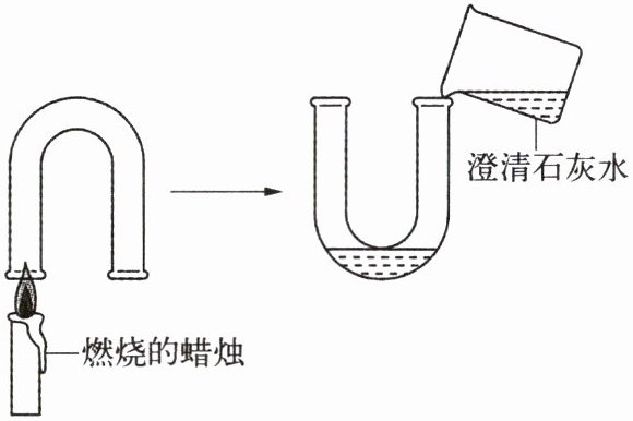 ③ 蜡烛燃烧10秒后,将U形管快速倒过来,立即向U形管中注入少量澄清石灰水,振荡,观察实验现象。