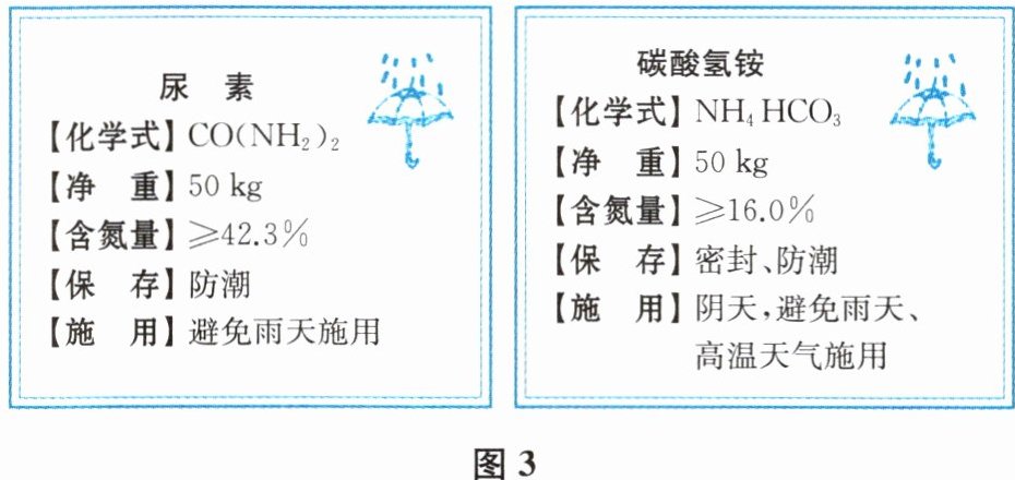(3)${NH3}$可进一步制得尿素和碳酸氢铵等化肥。图3是两种化肥的标签。