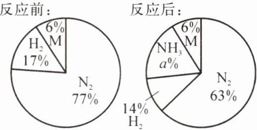 9. 将一定量的${N_{2}}$、${H_{2}}$和物质M置于密闭容器中,在一定条件下发生化学反应,反应前后各物质的质量分数如右下图所示。下列说法错误的是( )