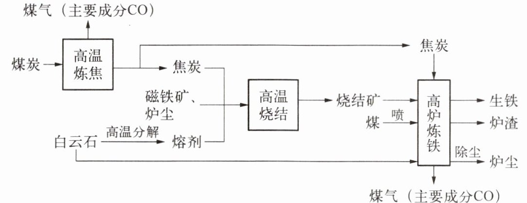 9. 利用含铁量低的磁铁矿冶炼生铁的流程如下图所示。